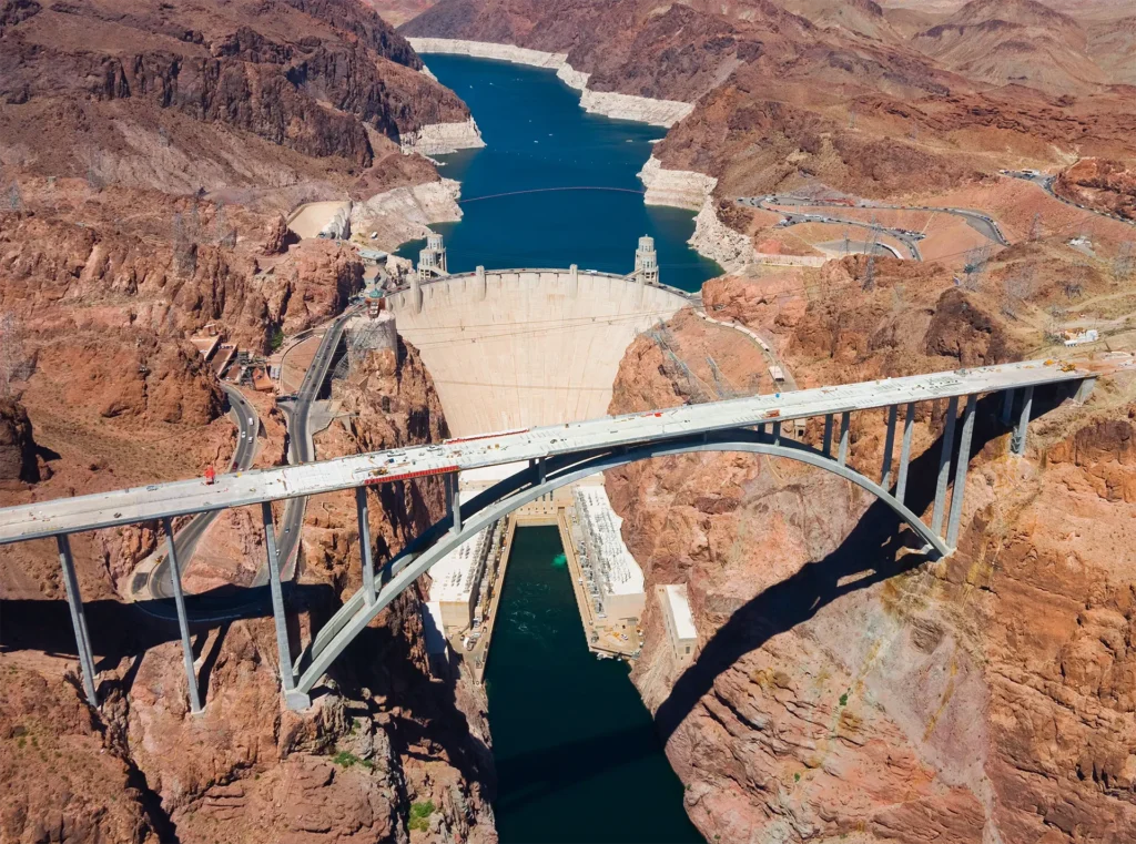 6.Hoover Dam Overlook: Depart from the Grand Canyon and travel about 2 hours to the Mike O’Callaghan–Pat Tillman Memorial Bridge, where you can walk along the pedestrian walkway high above the Colorado River for great views and photos of Hoover Dam.